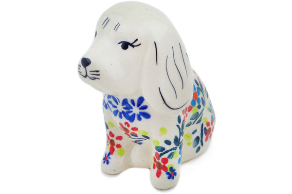This Neon Wreath 4" Dog Figurine was handmade and hand decorated in Boleslawiec, Poland by skilled artisans according to old traditional methods. This Polish stoneware is microwave, dishwasher, freezer, and oven safe up to 480°F. It does not contain lead or cadmium. It is part of the Neon Wreath Collection.