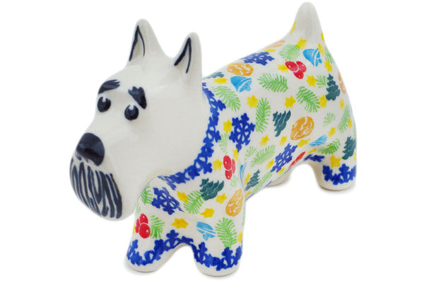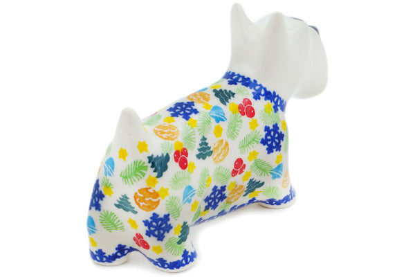 This Winter Sprinkles 5" Dog Figurine was handmade and hand decorated in Boleslawiec, Poland by skilled artisans according to old traditional methods. This is a Polish pottery Signature Unikat, which means that it has been hand painted with both sponges and brushes and it is signed by the artist who painted it. Unikat pieces are the most intricate works of art. Larger Unikat items take hours of very careful work to finish. This Polish stoneware is microwave, dishwasher, freezer, and oven safe up to 480°F. It does not contain lead or cadmium. It is part of the Winter Sprinkles Collection.