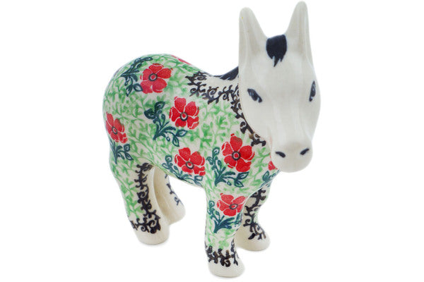 This Maraschino 5" Donkey Figurine was handmade and hand decorated in Boleslawiec, Poland by skilled artisans according to old traditional methods. This Polish stoneware is microwave, dishwasher, freezer, and oven safe up to 480°F. It does not contain lead or cadmium. It is part of the Maraschino Collection.