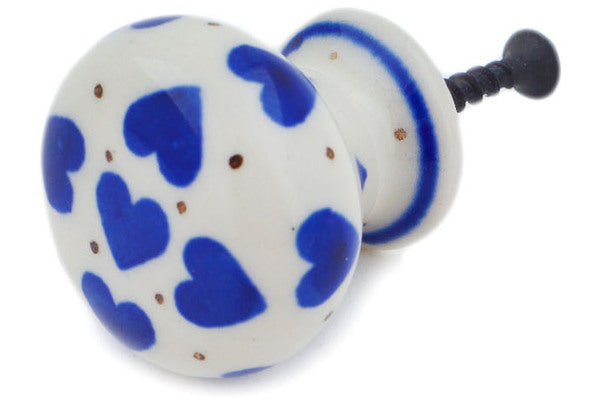 This Heart To Heart 1" Drawer knob 1-3/8 inch was handmade and hand decorated in Boleslawiec, Poland by skilled artisans according to old traditional methods. This Polish stoneware is microwave, dishwasher, freezer, and oven safe up to 480°F. It does not contain lead or cadmium. It is part of the Heart To Heart Collection.