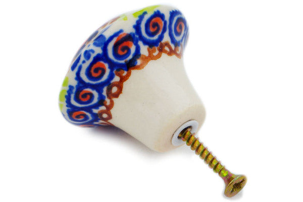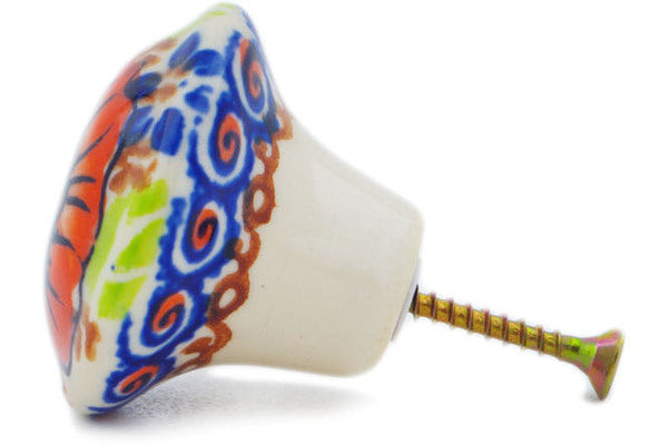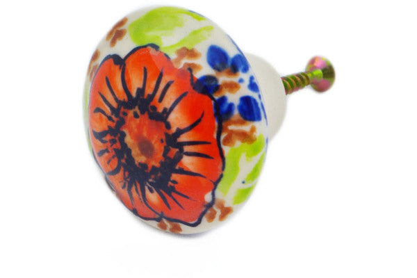 This Orange Zinnia 2" Drawer Pull Knob was handmade and hand decorated in Boleslawiec, Poland by skilled artisans according to old traditional methods. This is a Polish pottery Signature Unikat, which means that it has been hand painted with both sponges and brushes and it is signed by the artist who painted it. Unikat pieces are the most intricate works of art. Larger Unikat items take hours of very careful work to finish. This Polish stoneware is microwave, dishwasher, freezer, and oven safe up to 480°F. It does not contain lead or cadmium. It is part of the Orange Zinnia Collection.