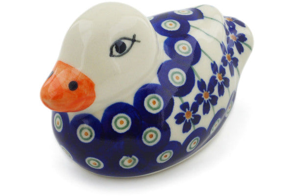 This Flowering Peacock 4" Duck Figurine was handmade and hand decorated in Boleslawiec, Poland by skilled artisans according to old traditional methods. This Polish stoneware is microwave, dishwasher, freezer, and oven safe up to 480°F. It does not contain lead or cadmium. It is part of the Flowering Peacock Collection.