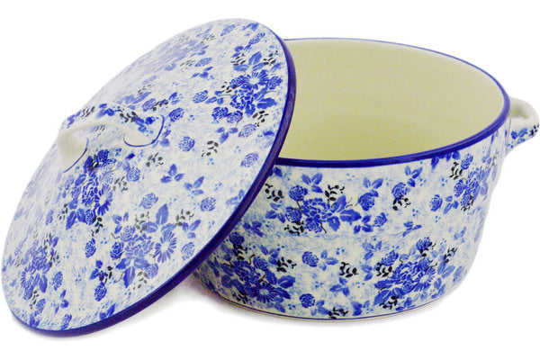 This Rainy Garden 8-inch Dutch Oven was handmade and hand decorated in Boleslawiec, Poland by skilled artisans according to old traditional methods. This is a Polish pottery Signature Unikat, which means that it has been hand painted with both sponges and brushes and it is signed by the artist who painted it. Unikat pieces are the most intricate works of art. Larger Unikat items take hours of very careful work to finish. This Polish stoneware is microwave, dishwasher, freezer, and oven safe up to 480°F. It does not contain lead or cadmium. It is part of the Rainy Garden Collection.