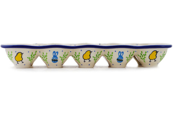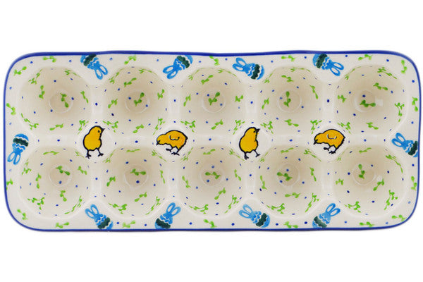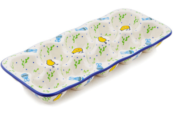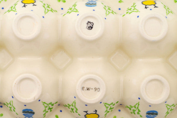 This Easter Day 11" Egg Crate was handmade and hand decorated in Boleslawiec, Poland by skilled artisans according to old traditional methods. This Polish stoneware is microwave, dishwasher, freezer, and oven safe up to 480°F. It does not contain lead or cadmium. It is part of the Easter Day Collection.
