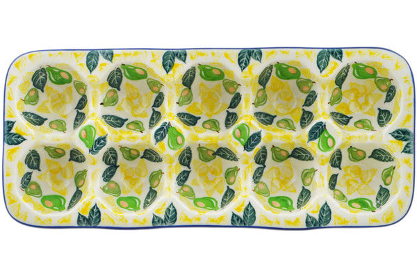 This Fresh Pear 11" Egg Crate was handmade and hand decorated in Boleslawiec, Poland by skilled artisans according to old traditional methods. This Polish stoneware is microwave, dishwasher, freezer, and oven safe up to 480°F. It does not contain lead or cadmium. It is part of the Fresh Pear Collection.