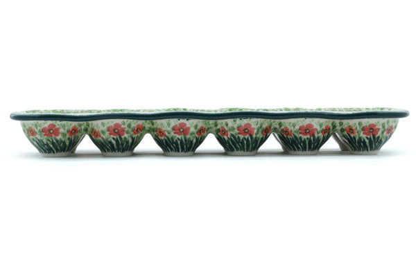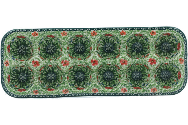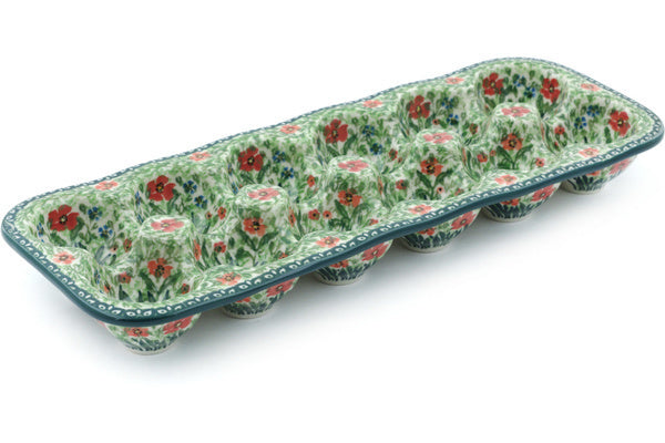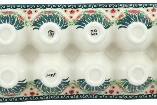 This Red Garden 13" Egg Crate was handmade and hand decorated in Boleslawiec, Poland by skilled artisans according to old traditional methods. This is a Polish pottery Signature Unikat, which means that it has been hand painted with both sponges and brushes and it is signed by the artist who painted it. Unikat pieces are the most intricate works of art. Larger Unikat items take hours of very careful work to finish. This Polish stoneware is microwave, dishwasher, freezer, and oven safe up to 480°F. It does not contain lead or cadmium. It is part of the Red Garden Collection.