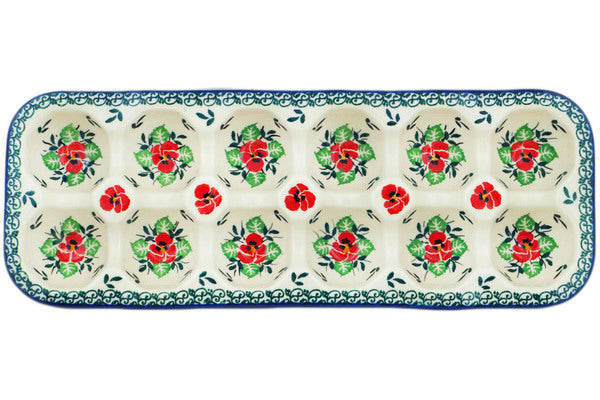 This Red Pansy 13" Egg Crate was handmade and hand decorated in Boleslawiec, Poland by skilled artisans according to old traditional methods. This Polish stoneware is microwave, dishwasher, freezer, and oven safe up to 480°F. It does not contain lead or cadmium. It is part of the Red Pansy Collection.