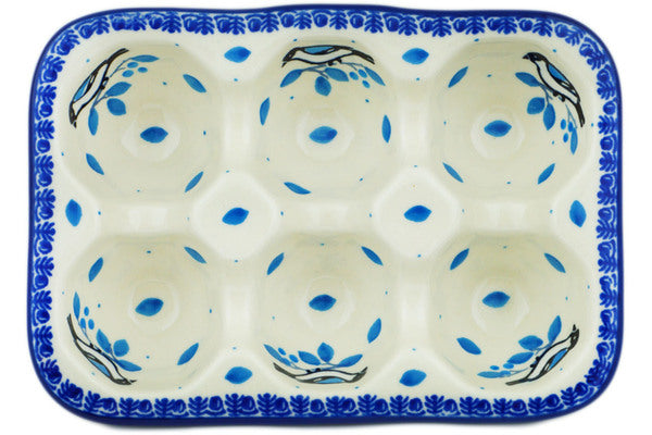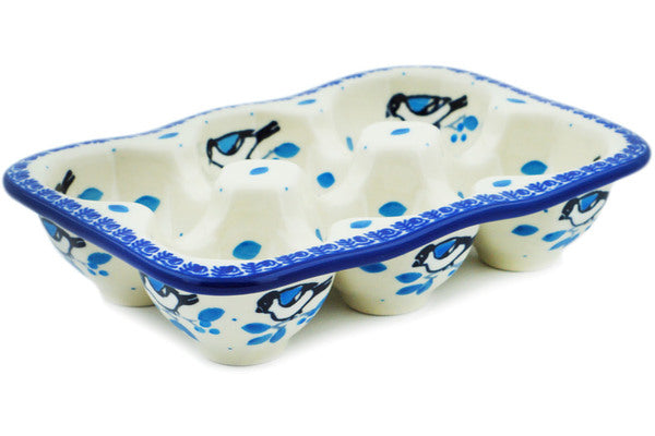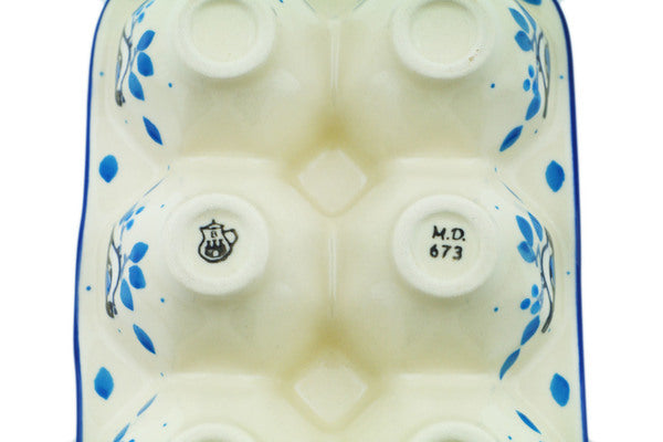 This Winter Sparrow 7" Egg Crate was handmade and hand decorated in Boleslawiec, Poland by skilled artisans according to old traditional methods. This Polish stoneware is microwave, dishwasher, freezer, and oven safe up to 480°F. It does not contain lead or cadmium. It is part of the Winter Sparrow Collection.