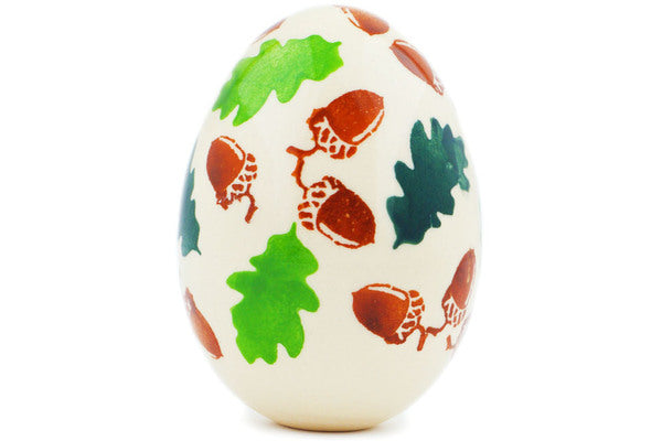 This Frenzy Of Acorns 3" Egg Figurine was handmade and hand decorated in Boleslawiec, Poland by skilled artisans according to old traditional methods. This Polish stoneware is microwave, dishwasher, freezer, and oven safe up to 480°F. It does not contain lead or cadmium. It is part of the Frenzy Of Acorns Collection.