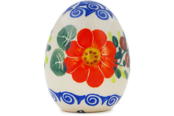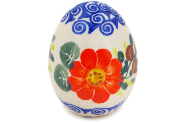 This Red Blossom 3" Egg Figurine was handmade and hand decorated in Boleslawiec, Poland by skilled artisans according to old traditional methods. This Polish stoneware is microwave, dishwasher, freezer, and oven safe up to 480°F. It does not contain lead or cadmium. It is part of the Red Blossom Collection.
