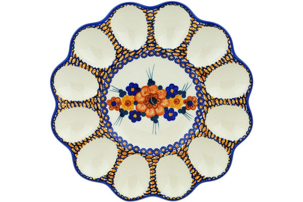 This Retro Brown Beauty 10" Egg Plate was handmade and hand decorated in Boleslawiec, Poland by skilled artisans according to old traditional methods. This is a Polish pottery Signature Unikat, which means that it has been hand painted with both sponges and brushes and it is signed by the artist who painted it. Unikat pieces are the most intricate works of art. Larger Unikat items take hours of very careful work to finish. This Polish stoneware is microwave, dishwasher, freezer, and oven safe up to 480°F. It does not contain lead or cadmium. It is part of the Retro Brown Beauty Collection.