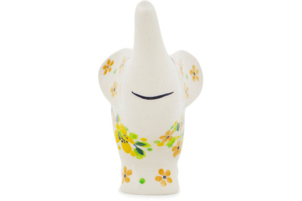 This Bright Spring 4" Elephant Figurine was handmade and hand decorated in Boleslawiec, Poland by skilled artisans according to old traditional methods. This is a Polish pottery Signature Unikat, which means that it has been hand painted with both sponges and brushes and it is signed by the artist who painted it. Unikat pieces are the most intricate works of art. Larger Unikat items take hours of very careful work to finish. This Polish stoneware is microwave, dishwasher, freezer, and oven safe up to 480°F. It does not contain lead or cadmium. It is part of the Bright Spring Collection.