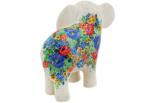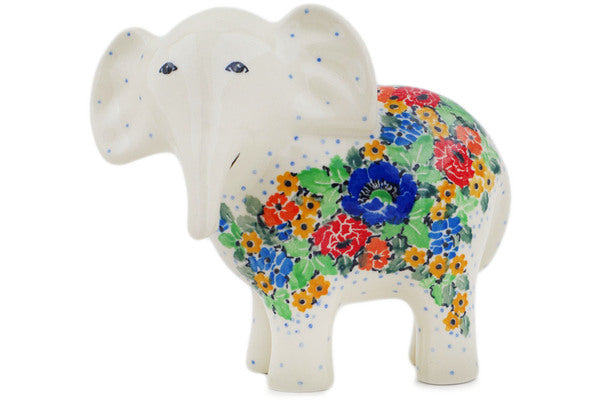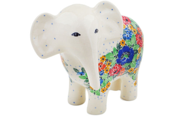 This Blooming Spring 6" Elephant Figurine was handmade and hand decorated in Boleslawiec, Poland by skilled artisans according to old traditional methods. This is a Polish pottery Signature Unikat, which means that it has been hand painted with both sponges and brushes and it is signed by the artist who painted it. Unikat pieces are the most intricate works of art. Larger Unikat items take hours of very careful work to finish. This Polish stoneware is microwave, dishwasher, freezer, and oven safe up to 480°F. It does not contain lead or cadmium. It is part of the Blooming Spring Collection.