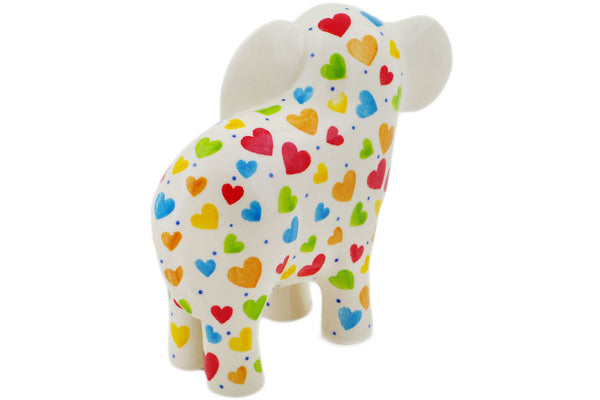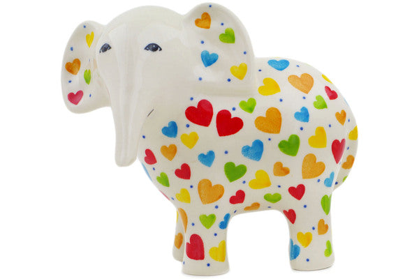 This In Love With Love 6" Elephant Figurine was handmade and hand decorated in Boleslawiec, Poland by skilled artisans according to old traditional methods. This is a Polish pottery Signature Unikat, which means that it has been hand painted with both sponges and brushes and it is signed by the artist who painted it. Unikat pieces are the most intricate works of art. Larger Unikat items take hours of very careful work to finish. This Polish stoneware is microwave, dishwasher, freezer, and oven safe up to 480°F. It does not contain lead or cadmium. It is part of the In Love With Love Collection.