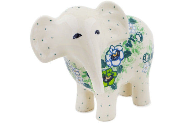 This Into Spring 6" Elephant Figurine was handmade and hand decorated in Boleslawiec, Poland by skilled artisans according to old traditional methods. This Polish stoneware is microwave, dishwasher, freezer, and oven safe up to 480°F. It does not contain lead or cadmium. It is part of the Into Spring Collection.