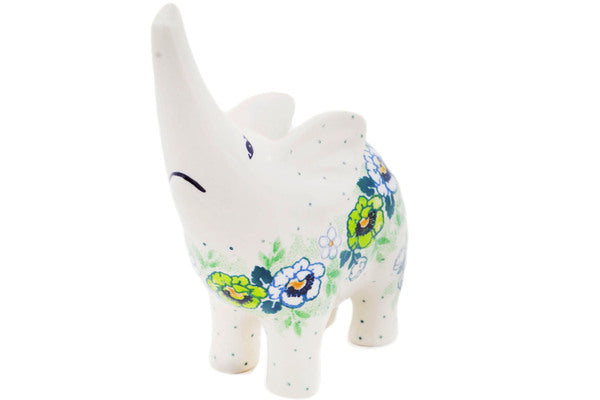 This Into Spring 7" Elephant Figurine was handmade and hand decorated in Boleslawiec, Poland by skilled artisans according to old traditional methods. This Polish stoneware is microwave, dishwasher, freezer, and oven safe up to 480°F. It does not contain lead or cadmium. It is part of the Into Spring Collection.