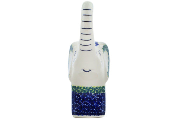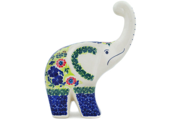 This Cobalt Water Meadow 8" Elephant Figurine was handmade and hand decorated in Boleslawiec, Poland by skilled artisans according to old traditional methods. This is a Polish pottery Signature Unikat, which means that it has been hand painted with both sponges and brushes and it is signed by the artist who painted it. Unikat pieces are the most intricate works of art. Larger Unikat items take hours of very careful work to finish. This Polish stoneware is microwave, dishwasher, freezer, and oven safe up to 480°F. It does not contain lead or cadmium. It is part of the Cobalt Water Meadow Collection.