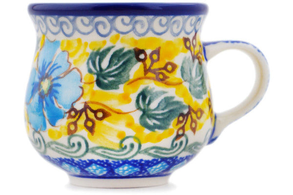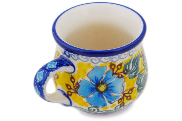 This Brilliant In Blue 2 oz Espresso Cup was handmade and hand decorated in Boleslawiec, Poland by skilled artisans according to old traditional methods. This is a Polish pottery Signature Unikat, which means that it has been hand painted with both sponges and brushes and it is signed by the artist who painted it. Unikat pieces are the most intricate works of art. Larger Unikat items take hours of very careful work to finish. This Polish stoneware is microwave, dishwasher, freezer, and oven safe up to 480°F. It does not contain lead or cadmium. It is part of the Brilliant In Blue Collection.