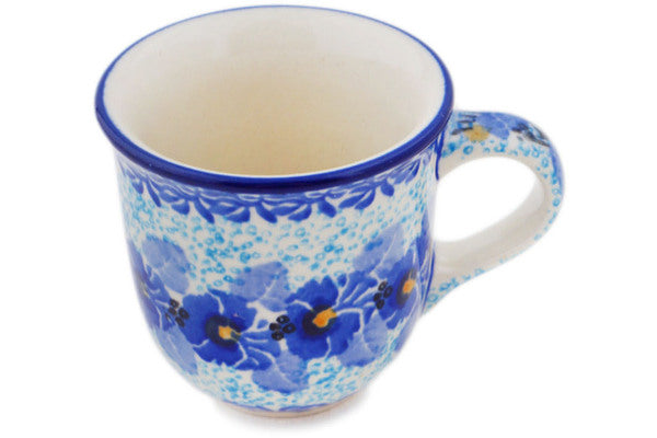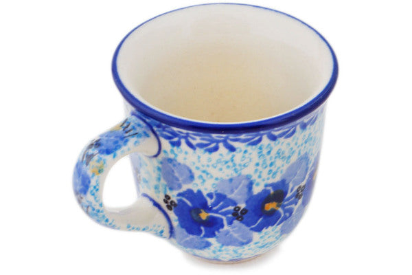This Deep Winter 2 oz Espresso Cup was handmade and hand decorated in Boleslawiec, Poland by skilled artisans according to old traditional methods. This is a Polish pottery Signature Unikat, which means that it has been hand painted with both sponges and brushes and it is signed by the artist who painted it. Unikat pieces are the most intricate works of art. Larger Unikat items take hours of very careful work to finish. This Polish stoneware is microwave, dishwasher, freezer, and oven safe up to 480°F. It does not contain lead or cadmium. It is part of the Deep Winter Collection.