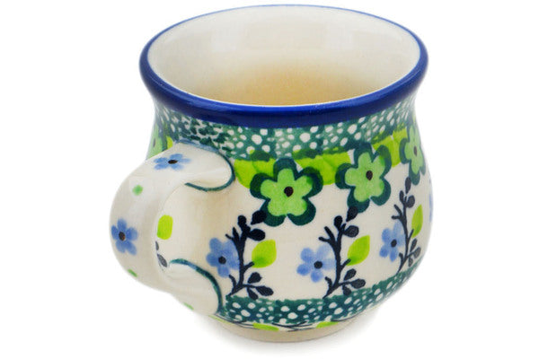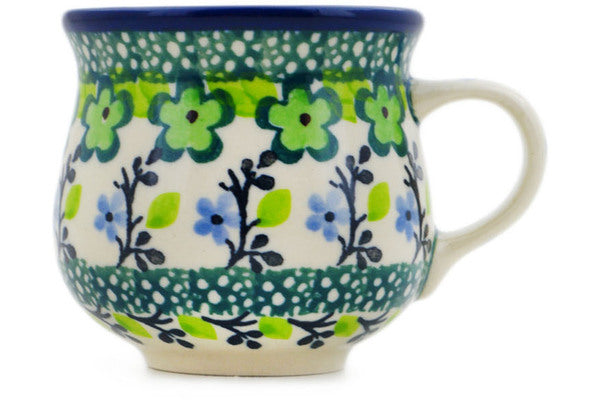 This Green Chrysanthemums 2 oz Espresso Cup was handmade and hand decorated in Boleslawiec, Poland by skilled artisans according to old traditional methods. This is a Polish pottery Signature Unikat, which means that it has been hand painted with both sponges and brushes and it is signed by the artist who painted it. Unikat pieces are the most intricate works of art. Larger Unikat items take hours of very careful work to finish. This Polish stoneware is microwave, dishwasher, freezer, and oven safe up to 480°F. It does not contain lead or cadmium. It is part of the Green Chrysanthemums Collection.