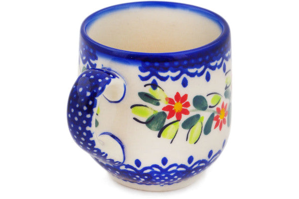 This Elegant Garland 4 oz Espresso Cup was handmade and hand decorated in Boleslawiec, Poland by skilled artisans according to old traditional methods. This Polish stoneware is microwave, dishwasher, freezer, and oven safe up to 480°F. It does not contain lead or cadmium. It is part of the Elegant Garland Collection.