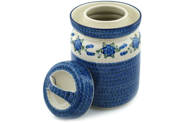 This Blue Poppies 118 oz Fermenting Crock with Water Seal Airlock was handmade and hand decorated in Boleslawiec, Poland by skilled artisans according to old traditional methods. This Polish stoneware is microwave, dishwasher, freezer, and oven safe up to 480°F. It does not contain lead or cadmium. It is part of the Blue Poppies Collection.