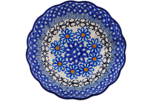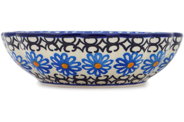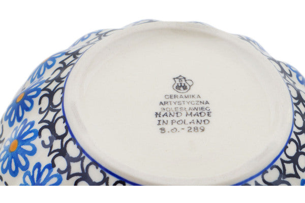 This Blue Daisy Chain 6-inch Fluted Bowl was handmade and hand decorated in Boleslawiec, Poland by skilled artisans according to old traditional methods. This Polish stoneware is microwave, dishwasher, freezer, and oven safe up to 480°F. It does not contain lead or cadmium. It is part of the Blue Daisy Chain Collection.