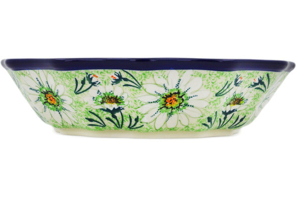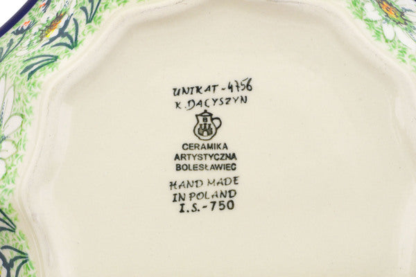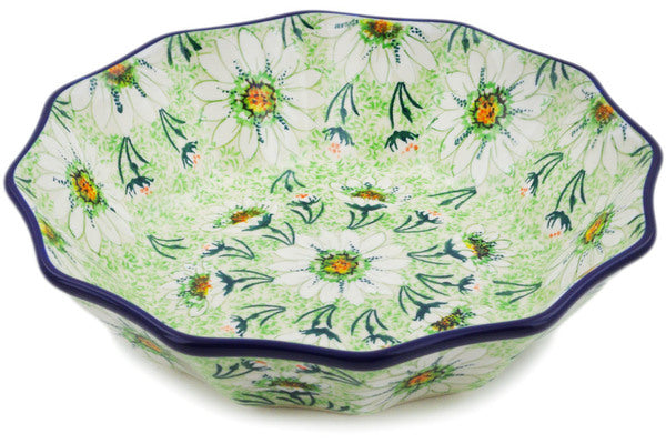 This Miss Bateman 9" Fluted Bowl was handmade and hand decorated in Boleslawiec, Poland by skilled artisans according to old traditional methods. This is a Polish pottery Signature Unikat, which means that it has been hand painted with both sponges and brushes and it is signed by the artist who painted it. Unikat pieces are the most intricate works of art. Larger Unikat items take hours of very careful work to finish. This Polish stoneware is microwave, dishwasher, freezer, and oven safe up to 480°F. It does not contain lead or cadmium. It is part of the Miss Bateman Collection.