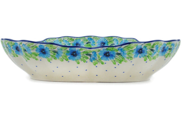 This Springing Into Spring 9" Fluted Bowl was handmade and hand decorated in Boleslawiec, Poland by skilled artisans according to old traditional methods. This is a Polish pottery Signature Unikat, which means that it has been hand painted with both sponges and brushes and it is signed by the artist who painted it. Unikat pieces are the most intricate works of art. Larger Unikat items take hours of very careful work to finish. This Polish stoneware is microwave, dishwasher, freezer, and oven safe up to 480°F. It does not contain lead or cadmium. It is part of the Springing Into Spring Collection.
