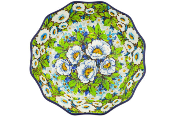 This Wild Field Flowers 9" Fluted Bowl was handmade and hand decorated in Boleslawiec, Poland by skilled artisans according to old traditional methods. This is a Polish pottery Signature Unikat, which means that it has been hand painted with both sponges and brushes and it is signed by the artist who painted it. Unikat pieces are the most intricate works of art. Larger Unikat items take hours of very careful work to finish. This Polish stoneware is microwave, dishwasher, freezer, and oven safe up to 480°F. It does not contain lead or cadmium. It is part of the Wild Field Flowers Collection.