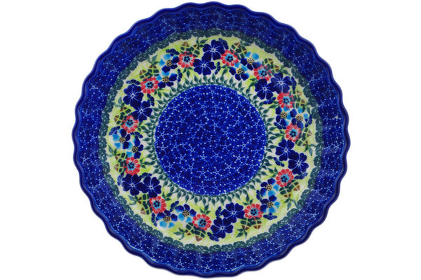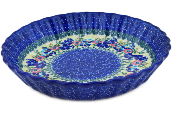 Fluted Pie Dish 10" Cobalt Water Meadow Theme UNIKAT