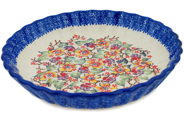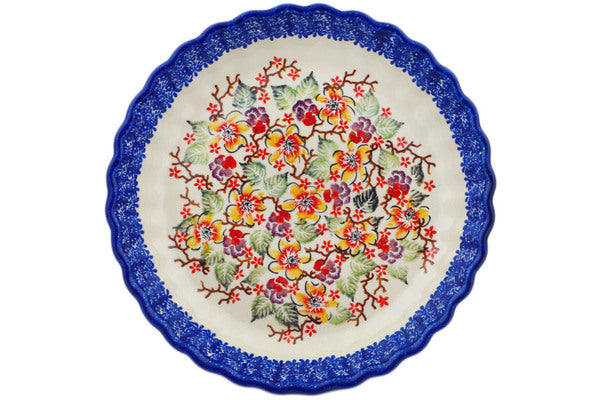 Fluted Pie Dish 10" Dogwood Dreams Theme UNIKAT