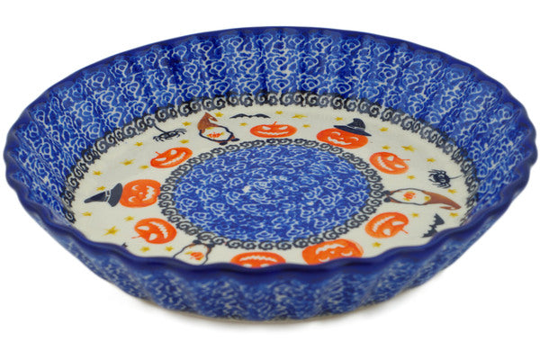 This Harvest Haunt 10" Fluted Pie Dish was handmade and hand decorated in Boleslawiec, Poland by skilled artisans according to old traditional methods. This Polish stoneware is microwave, dishwasher, freezer, and oven safe up to 480°F. It does not contain lead or cadmium. It is part of the Harvest Haunt Collection.