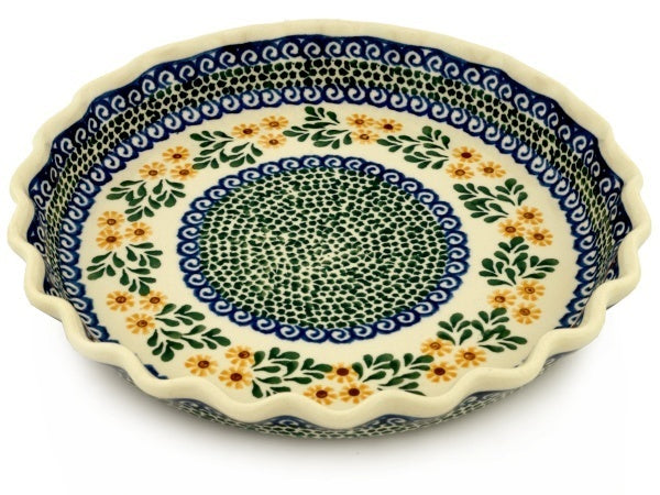 This Summer Day 10" Fluted Pie Dish was handmade and hand decorated in Boleslawiec, Poland by skilled artisans according to old traditional methods. This Polish stoneware is microwave, dishwasher, freezer, and oven safe up to 480°F. It does not contain lead or cadmium. It is part of the Summer Day Collection.