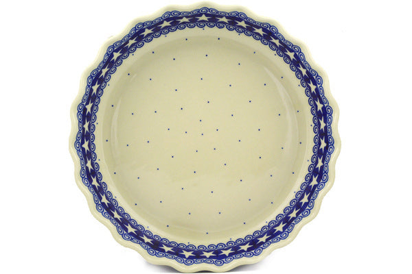 This Swirling Stars 11" Fluted Pie Dish was handmade and hand decorated in Boleslawiec, Poland by skilled artisans according to old traditional methods. This Polish stoneware is microwave, dishwasher, freezer, and oven safe up to 480°F. It does not contain lead or cadmium. It is part of the Swirling Stars Collection.