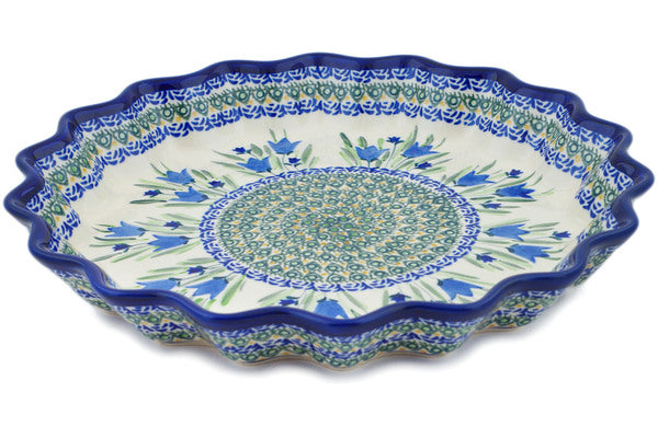 This Tulip Fields 13" Fluted Pie Dish was handmade and hand decorated in Boleslawiec, Poland by skilled artisans according to old traditional methods. This is a Polish pottery Signature Unikat, which means that it has been hand painted with both sponges and brushes and it is signed by the artist who painted it. Unikat pieces are the most intricate works of art. Larger Unikat items take hours of very careful work to finish. This Polish stoneware is microwave, dishwasher, freezer, and oven safe up to 480°F. It does not contain lead or cadmium. It is part of the Tulip Fields Collection.