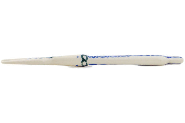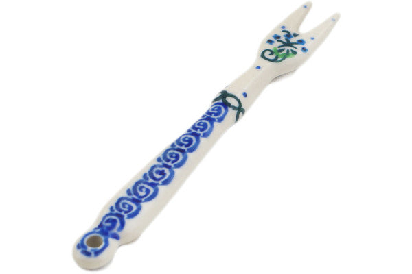 This Forget Me Not Circle 5" Fondue Fork was handmade and hand decorated in Boleslawiec, Poland by skilled artisans according to old traditional methods. This is a Polish pottery Signature Unikat, which means that it has been hand painted with both sponges and brushes and it is signed by the artist who painted it. Unikat pieces are the most intricate works of art. Larger Unikat items take hours of very careful work to finish. This Polish stoneware is microwave, dishwasher, freezer, and oven safe up to 480°F. It does not contain lead or cadmium. It is part of the Forget Me Not Circle Collection.