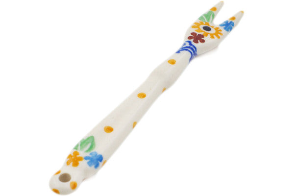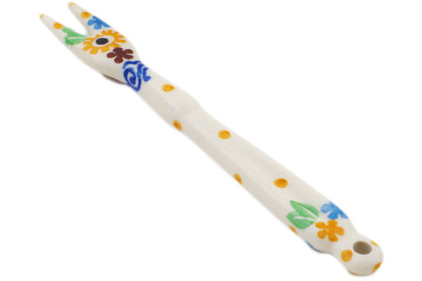 This Sea Of Posies 5" Fondue Fork was handmade and hand decorated in Boleslawiec, Poland by skilled artisans according to old traditional methods. This is a Polish pottery Signature Unikat, which means that it has been hand painted with both sponges and brushes and it is signed by the artist who painted it. Unikat pieces are the most intricate works of art. Larger Unikat items take hours of very careful work to finish. This Polish stoneware is microwave, dishwasher, freezer, and oven safe up to 480°F. It does not contain lead or cadmium. It is part of the Sea Of Posies Collection.