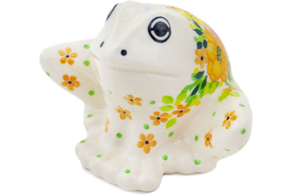 This Bright Spring 4" Frog Figurine was handmade and hand decorated in Boleslawiec, Poland by skilled artisans according to old traditional methods. This is a Polish pottery Signature Unikat, which means that it has been hand painted with both sponges and brushes and it is signed by the artist who painted it. Unikat pieces are the most intricate works of art. Larger Unikat items take hours of very careful work to finish. This Polish stoneware is microwave, dishwasher, freezer, and oven safe up to 480°F. It does not contain lead or cadmium. It is part of the Bright Spring Collection.