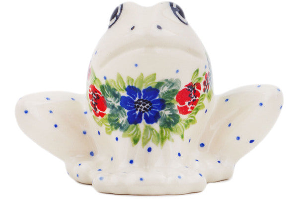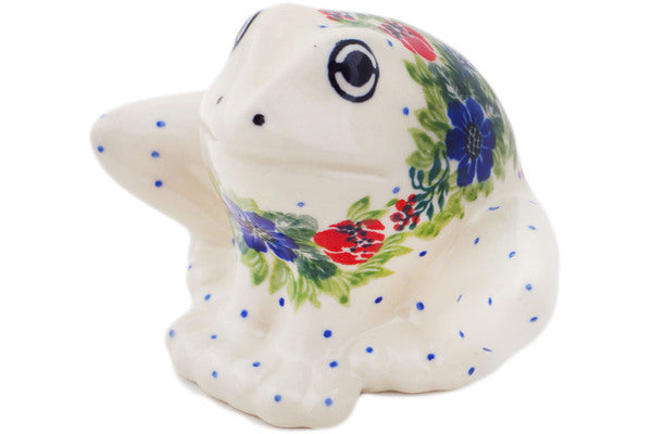 This Springtime Wreath 4" Frog Figurine was handmade and hand decorated in Boleslawiec, Poland by skilled artisans according to old traditional methods. This Polish stoneware is microwave, dishwasher, freezer, and oven safe up to 480°F. It does not contain lead or cadmium. It is part of the Springtime Wreath Collection.