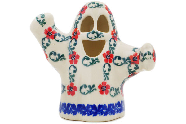 Ghost Candle Holder 5" Red Flower Lattice Theme