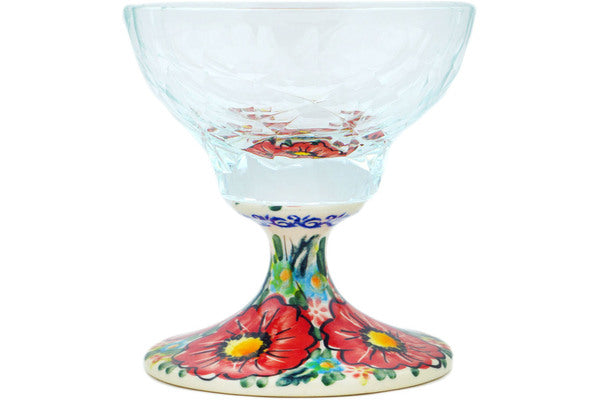 This Red Hibiscus 7 oz Glass was handmade and hand decorated in Boleslawiec, Poland by skilled artisans according to old traditional methods. This is a Polish pottery Signature Unikat, which means that it has been hand painted with both sponges and brushes and it is signed by the artist who painted it. Unikat pieces are the most intricate works of art. Larger Unikat items take hours of very careful work to finish. This Polish stoneware is microwave, dishwasher, freezer, and oven safe up to 480°F. It does not contain lead or cadmium. It is part of the Red Hibiscus Collection.