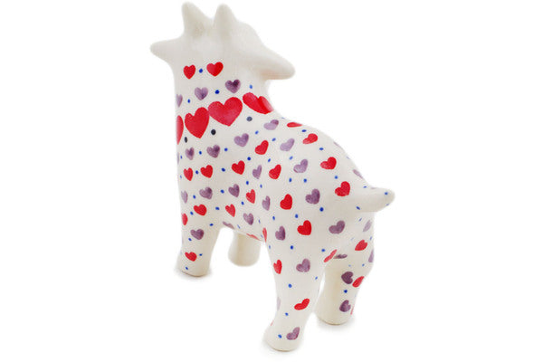This Love All Around 6" Goat Figurine was handmade and hand decorated in Boleslawiec, Poland by skilled artisans according to old traditional methods. This Polish stoneware is microwave, dishwasher, freezer, and oven safe up to 480°F. It does not contain lead or cadmium. It is part of the Love All Around Collection.