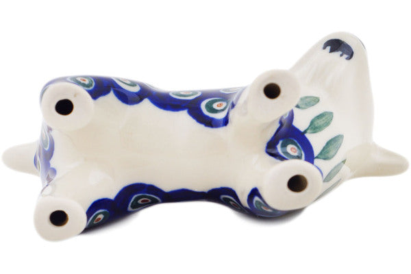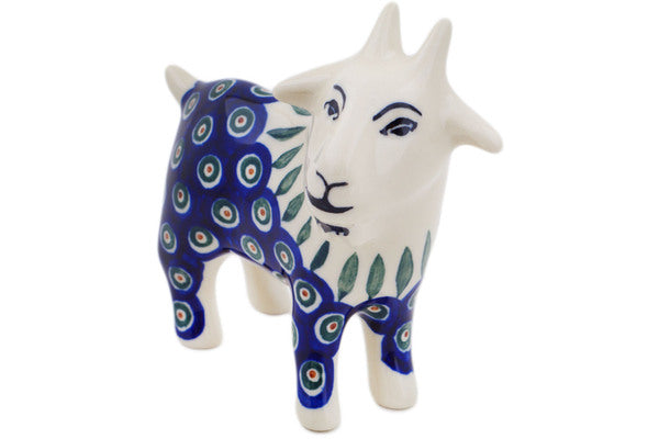 This Peacock Leaves 6" Goat Figurine was handmade and hand decorated in Boleslawiec, Poland by skilled artisans according to old traditional methods. This Polish stoneware is microwave, dishwasher, freezer, and oven safe up to 480°F. It does not contain lead or cadmium. It is part of the Peacock Leaves Collection.