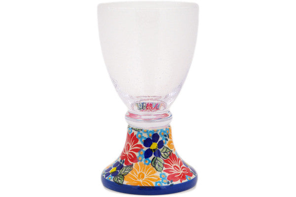 This Warm Summer 12 oz Goblet was handmade and hand decorated in Boleslawiec, Poland by skilled artisans according to old traditional methods. This is a Polish pottery Signature Unikat, which means that it has been hand painted with both sponges and brushes and it is signed by the artist who painted it. Unikat pieces are the most intricate works of art. Larger Unikat items take hours of very careful work to finish. This Polish stoneware is microwave, dishwasher, freezer, and oven safe up to 480°F. It does not contain lead or cadmium. It is part of the Warm Summer Collection.