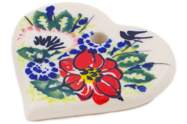 This Royal Meadow 3" Heart Pendant was handmade and hand decorated in Boleslawiec, Poland by skilled artisans according to old traditional methods. This is a Polish pottery Signature Unikat, which means that it has been hand painted with both sponges and brushes and it is signed by the artist who painted it. Unikat pieces are the most intricate works of art. Larger Unikat items take hours of very careful work to finish. This Polish stoneware is microwave, dishwasher, freezer, and oven safe up to 480°F. It does not contain lead or cadmium. It is part of the Royal Meadow Collection.