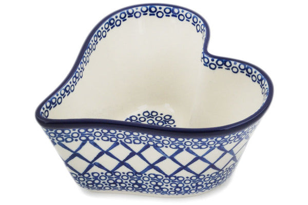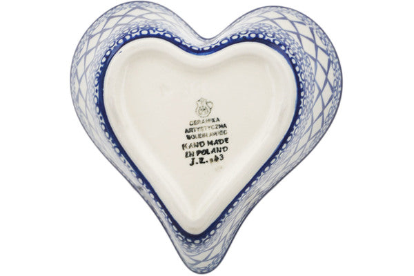 This Blue Harmony 6" Heart Shaped Bowl was handmade and hand decorated in Boleslawiec, Poland by skilled artisans according to old traditional methods. This Polish stoneware is microwave, dishwasher, freezer, and oven safe up to 480°F. It does not contain lead or cadmium. It is part of the Blue Harmony Collection.