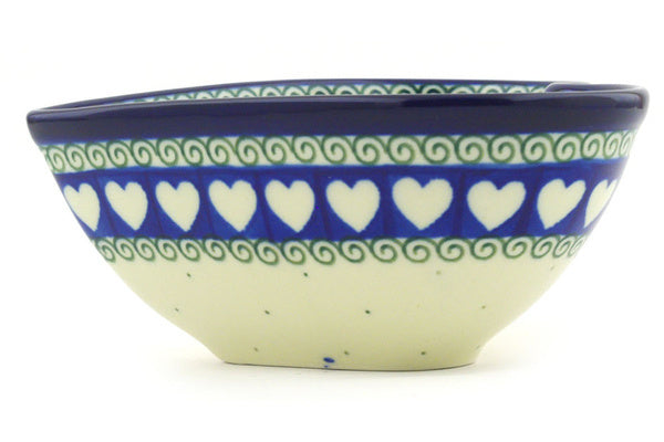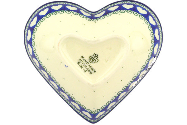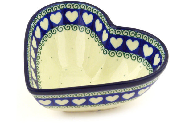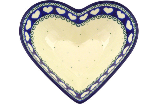 This Light Hearted 7" Heart Shaped Bowl was handmade and hand decorated in Boleslawiec, Poland by skilled artisans according to old traditional methods. This Polish stoneware is microwave, dishwasher, freezer, and oven safe up to 480°F. It does not contain lead or cadmium. It is part of the Light Hearted Collection.