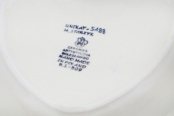 This Robin & Wren 8" Heart Shaped Bowl was handmade and hand decorated in Boleslawiec, Poland by skilled artisans according to old traditional methods. This is a Polish pottery Signature Unikat, which means that it has been hand painted with both sponges and brushes and it is signed by the artist who painted it. Unikat pieces are the most intricate works of art. Larger Unikat items take hours of very careful work to finish. This Polish stoneware is microwave, dishwasher, freezer, and oven safe up to 480°F. It does not contain lead or cadmium. It is part of the Robin & Wren Collection.