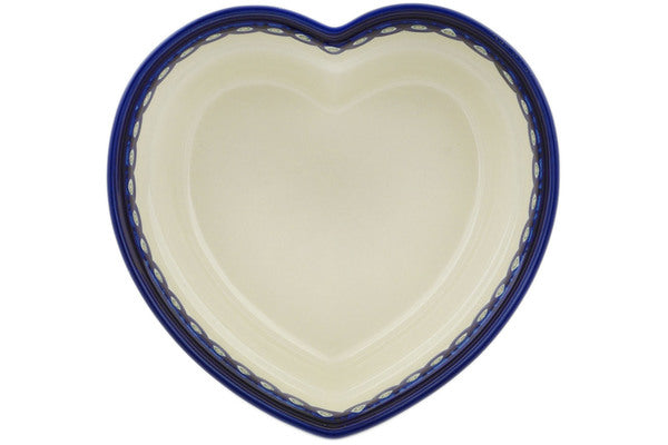 This Flowering Peacock 9" Heart Shaped Bowl was handmade and hand decorated in Boleslawiec, Poland by skilled artisans according to old traditional methods. This Polish stoneware is microwave, dishwasher, freezer, and oven safe up to 480°F. It does not contain lead or cadmium. It is part of the Flowering Peacock Collection.